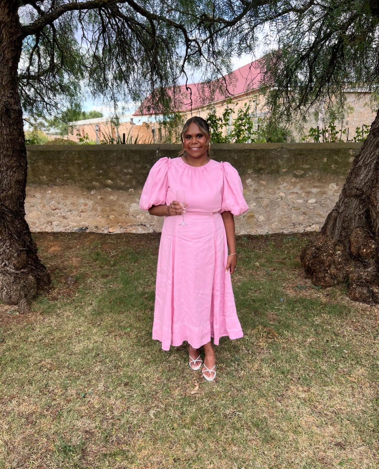 Enjoy an exaggerated sleeve, A-line midi skirt and back cutout detail, with rear zip closure - and our beloved pockets!