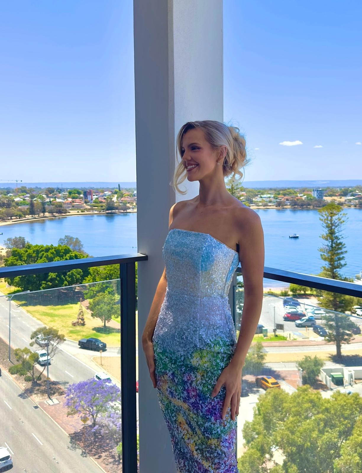 The Arden Strapless Midi Dress in Multi Ombre is made for making an entrance—and just as memorable an exit. Covered in shimmering printed sequins, this strapless midi catches the light from every angle with its sleek, figure-hugging silhouette.